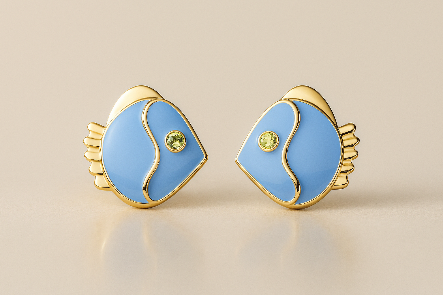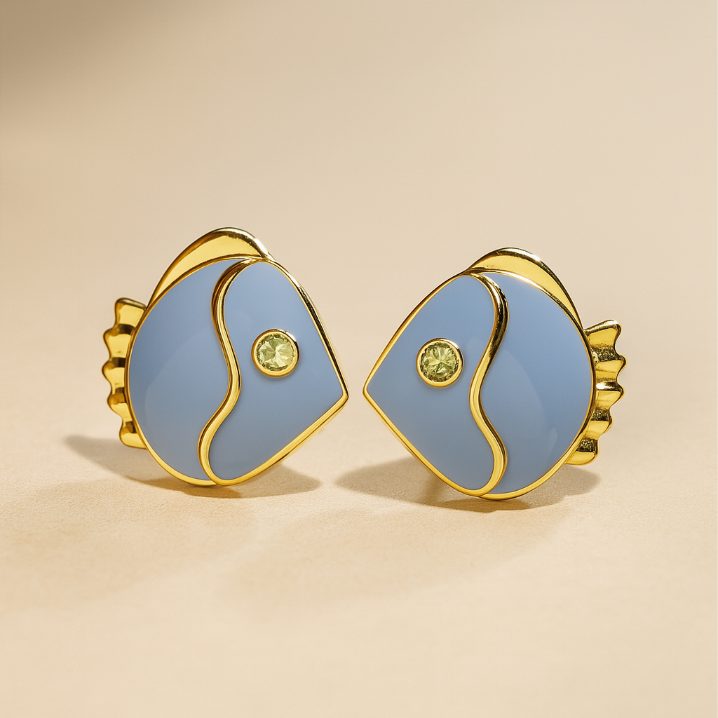 Blue Enamel Fish Stud Earrings – Ocean-Inspired Design