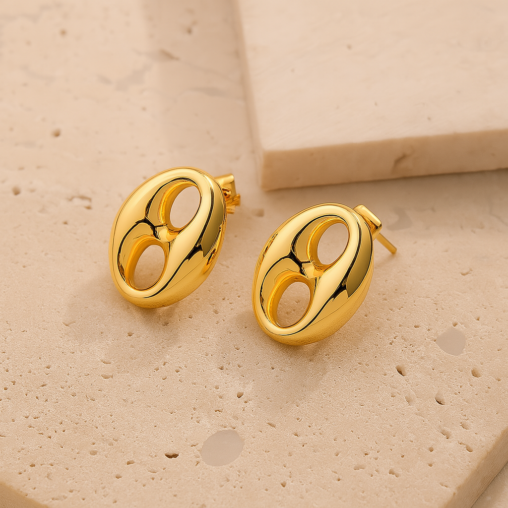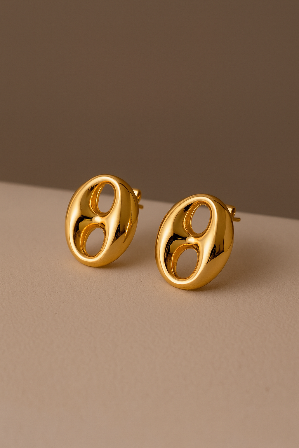 Bold Oval Cutout Stud Earrings – Gold Finish