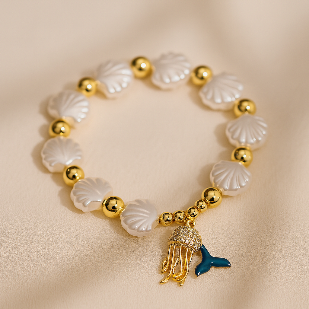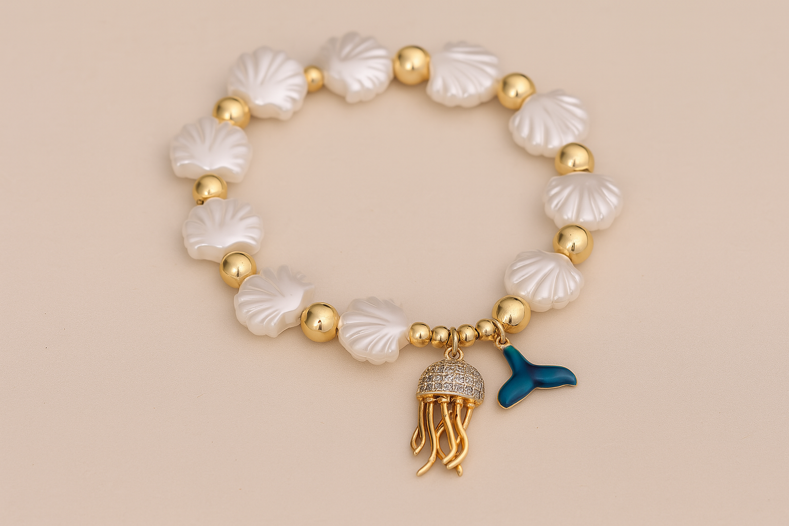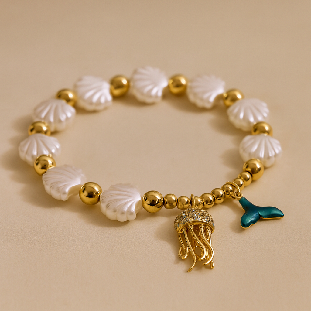 Includes a sparkling jellyfish charm and turquoise mermaid tail